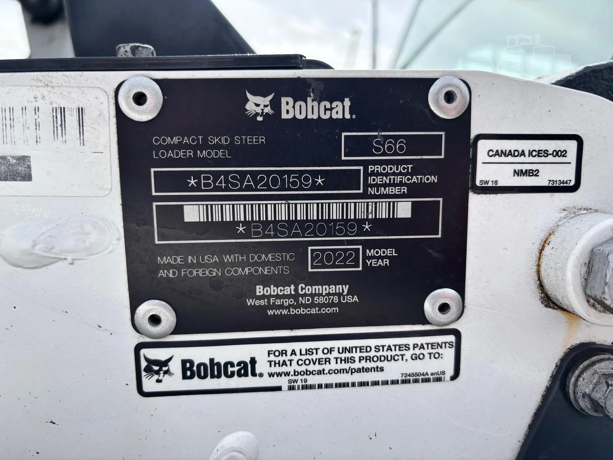 2022 Bobcat S66 Skid Steer Loader equipped with HVAC, Selectable Joystick Controls, 2 Speed Travel and 68″ bucket.