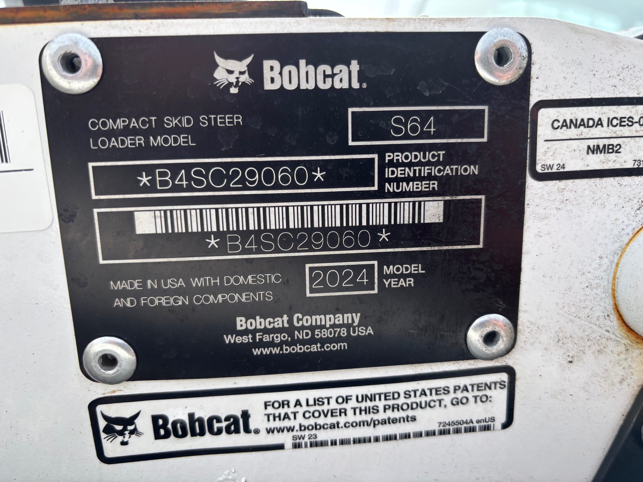 2024 Bobcat S64 Skid Steer Loader equipped with HVAC, Selectable Joystick Controls, 2 Speed Travel and 68″ bucket. This machine was used for a single 4-month snow rental and has only 125 hours—exceptionally low usage. It will be sold with the remainder of the original 2,000-hour full coverage warranty from Bobcat expiring on 10/23/2027, providing added peace of mind. Fully inspected and serviced by factory-trained technicians, this unit is work-ready and in excellent condition.